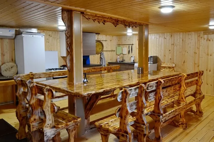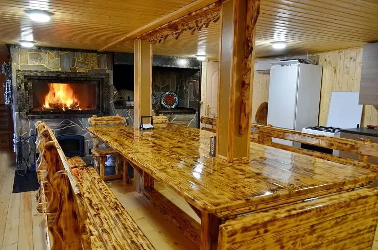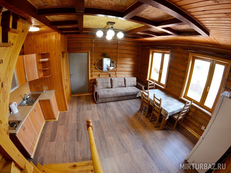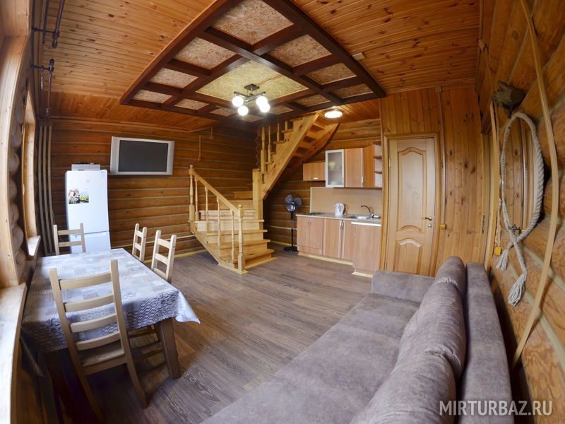 На базе отдыха доступно все необходимое для комфортного отдыха большой компанией. На территории базы находится банный комплекс, зона для барбекю с беседкой и профессиональный мангал. Также можно арендовать лодку, квадроцикл или снегоход, отправиться на рыбалку или лесную прогулку. Апартаменты оснащены кухонными зонами со всей необходимой техникой, душевыми комнатами, бесплатным wi-fi и спутниковым TV, а также большим количеством удобных спальных мест.