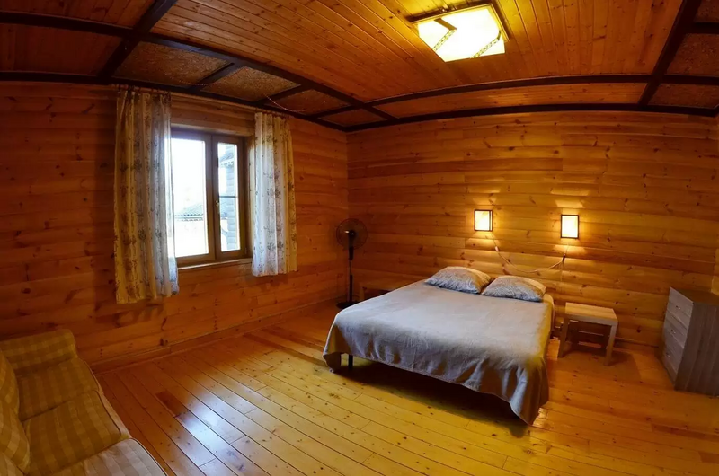 Спальные места: 2 двуспальные кровати, 2 полутороспальные кровати, 3 двуспальных дивана.