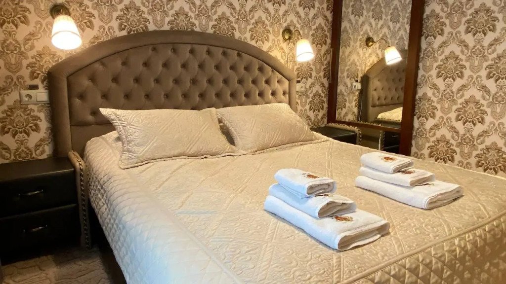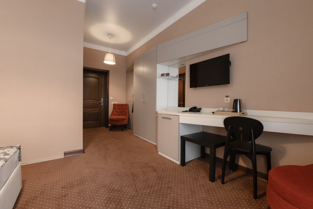 В номере вы найдёте телевизор и халат. Оснащение зависит от выбранной категории номера.