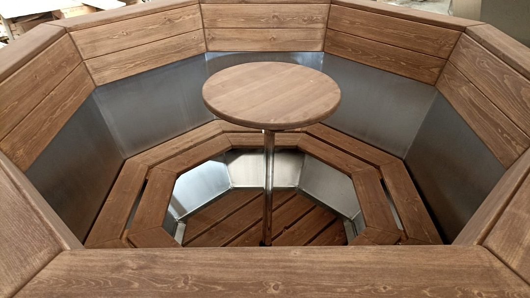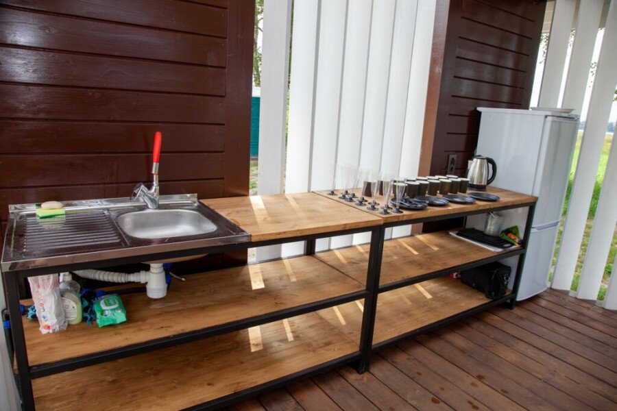 Гостей ждет сибирский банный чан на дровах, расположенный на свежем воздухе, что добавляет особый шарм и атмосферу к отдыху.