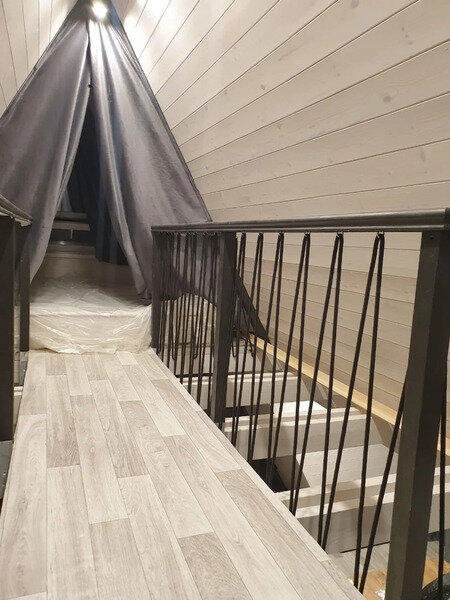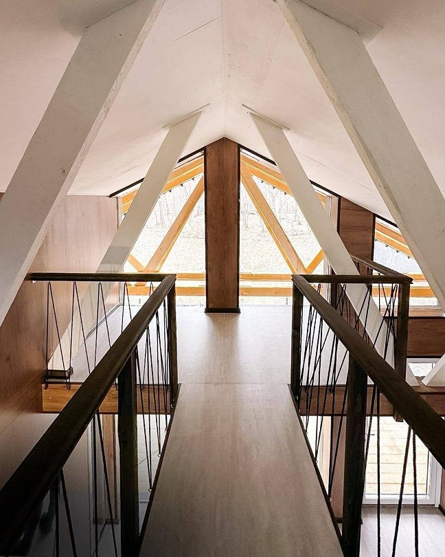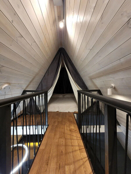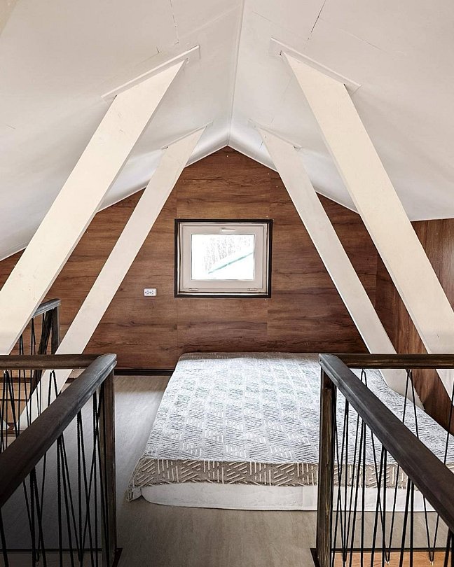 На втором этаже вас ждут два двуспальных места. При желании можно добавить две односпальные раскладушки, чтобы разместить всю компанию с максимальным комфортом.