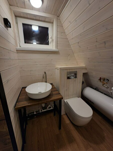 В ванной комнате предусмотрены душевая, раковина и гигиенический душ, а для вашего удобства – халаты, полотенца и средства гигиены. Любители барбекю смогут воспользоваться мангалом с углями и дровами, наслаждаясь природой в полной мере!