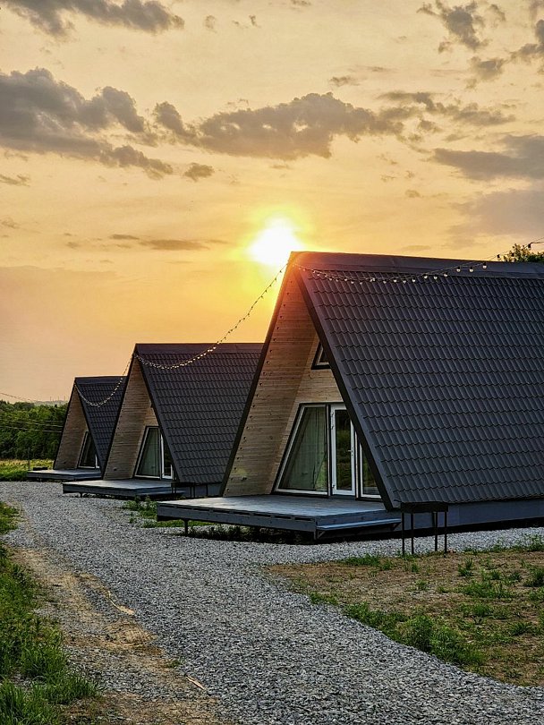 На территории базы гостей ждут уютные домики и уникальная беседка «Иглу» с прозрачными стенами и потолком, идеально подходящая для дружеских посиделок и семейных трапез. Рядом оборудована зона для приготовления блюд на мангале. Пространство продумано до мелочей: здесь есть все для комфортного времяпровождения на свежем воздухе.