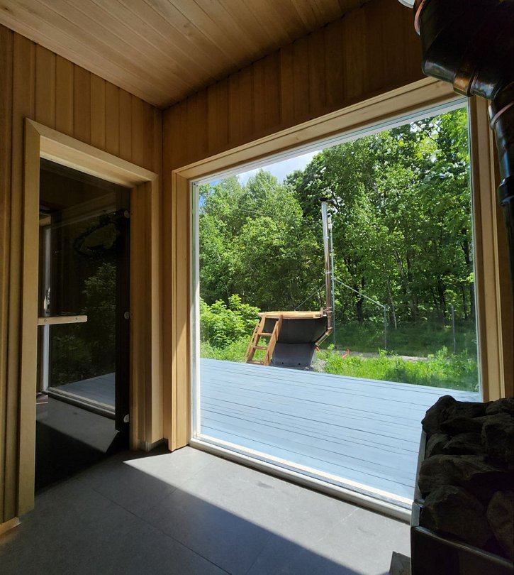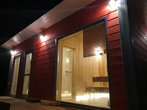 Рядом с баней располагается банный чан, где гости могут насладиться парением на свежем воздухе. Минимальное время бронирования составляет два часа, что обеспечивает возможность полностью расслабиться и насладиться отдыхом в комфортной обстановке.