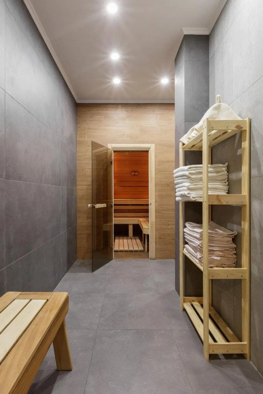 Инфраструктура: тапочки, полотенца, простыни, шапочки, душФинская сауна