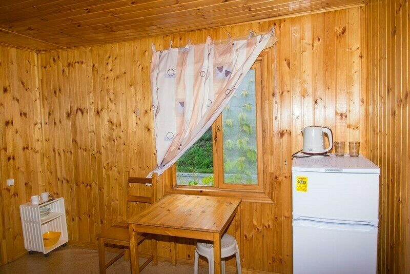 В домиках имеется электрочайник, чайная посуда, холодильник, отдельный санузел с душевой кабиной, холодная и горячая вода.