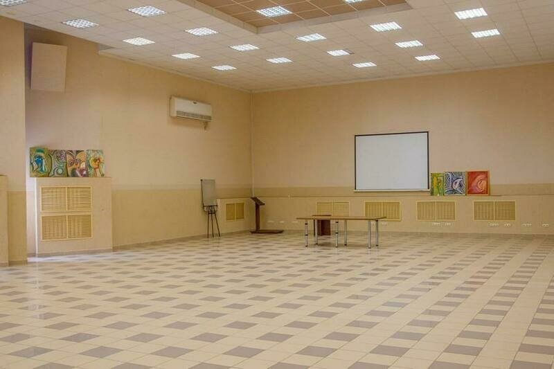 Зал оборудован проектором, мобильной звуковой системой, экраном размером 2х2 м, флип–чартами.