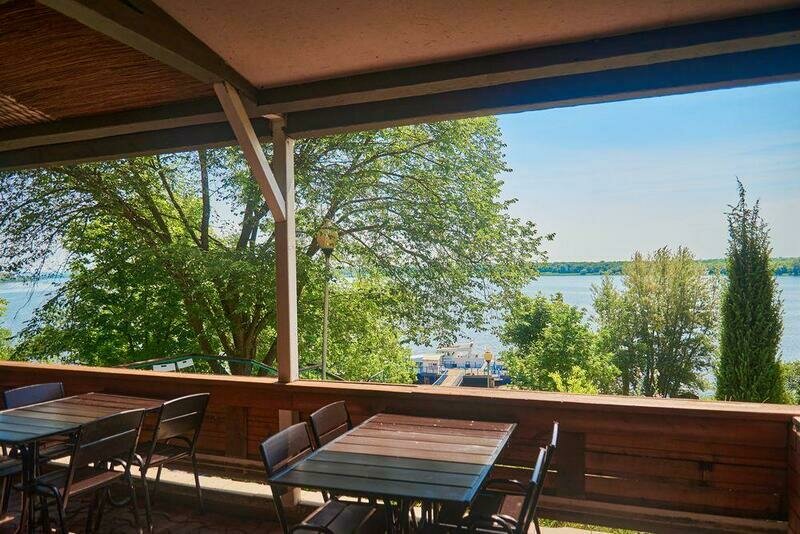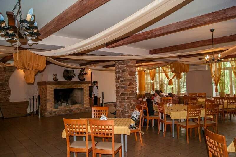 К услугам гостей ресторан, предлагающий популярные блюда русской и европейской кухни. Вместимость до 150 человек, наличие сцены и летней террасы делают его идеальным местом для свадеб или корпоративных вечеринок. Дети, наверняка, с восторгом воспримут комнату с игрушками, детскую площадку с качелями и горками.