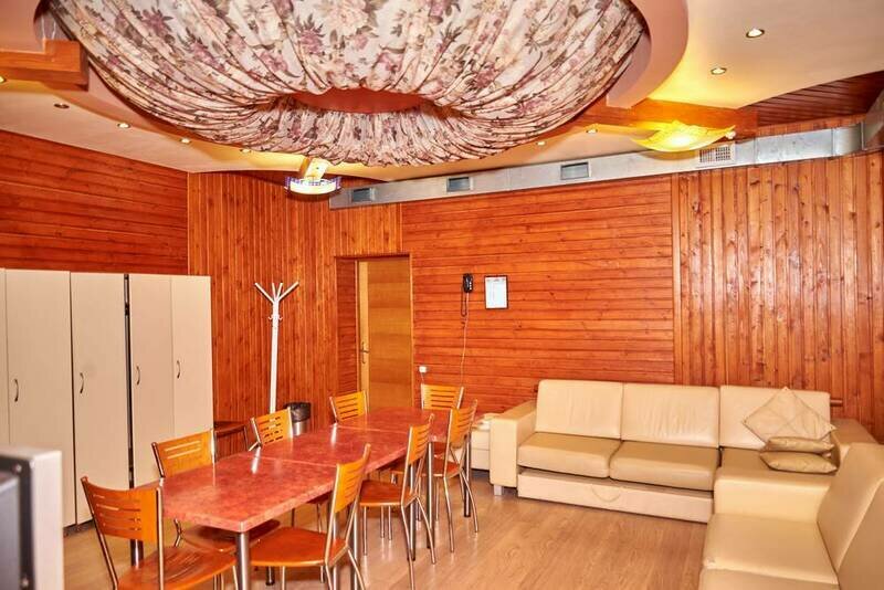 К услугам гостей комплекса сауна, рассчитанная на 12 человек, оборудованная 8–метровым бассейном. В сауне запрещается пользоваться вениками.