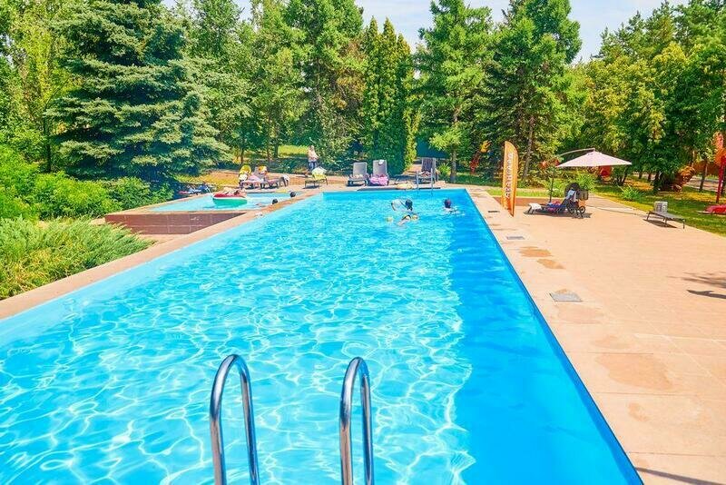 Для детей предусмотрен детский бассейн, который расположен совместно с основным бассейном, что позволяет отдыхать всей семьей.