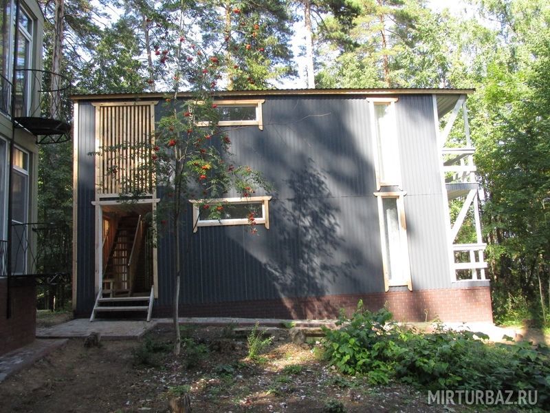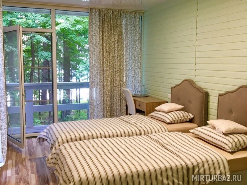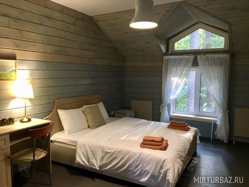 Семейный отдыхДостоинстваЗамечательное место для базы отдыха, корпуса с номерами находятся прямо посреди деревьев, воздух замечательный. Недалеко находится водохранилище, в номерах есть санузлы, в некоторых номерах есть необходимая техника. Кухня общая, можно заказать еду, все нужно заказать заранее. Также есть мангалы. Добраться до базы отдыха легко, дорога хорошая. Также есть баня. Своего пляжа база не имеет, но отдых был замечательным.