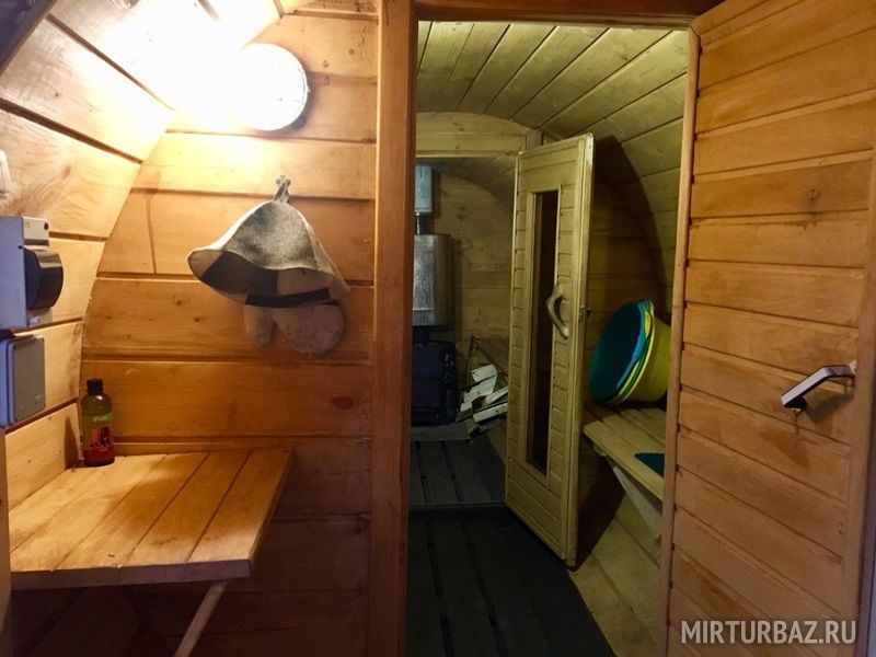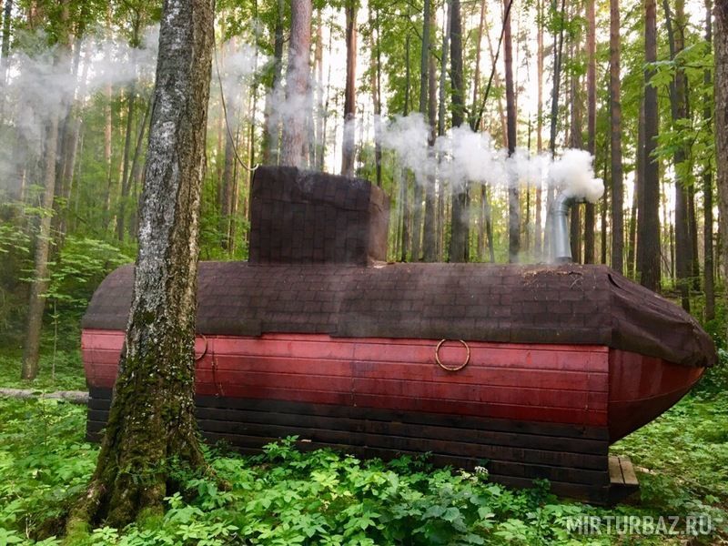 К вашим услугам 3 вида бань: русская баня (подводная лодка), русская баня-бочка у воды с трапом и русская баня «привет от Алегровой".