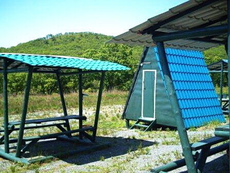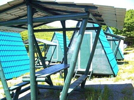 В каждом домике располагается по 2 одноместных кровати, столик. Около каждого домика стоит освещаемая беседка. Всем отдыхающим выдается чистое постельное белье. Туалеты и душ находятся на улице. Душ летний. Электроснабжение централизованное. Своя скважина. Летняя баня.