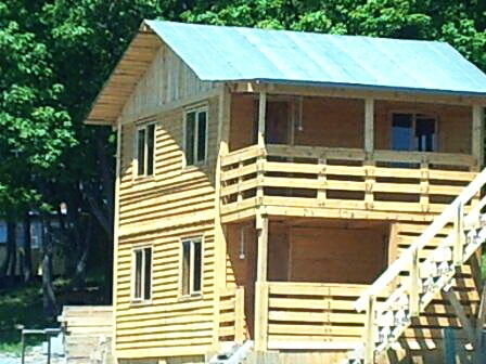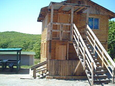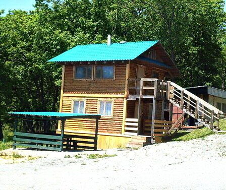 Двухэтажная гостиница летнего типа на 20 человек. На первом этаже располагается большой зал, отдельная кухня, туалеты с душевыми. На втором этаже располагается 6 номеров. В каждом номере отдельный балкон с видом на море. 4 номера 3-х местные — одна двуспальная и одна полутораспальная кровать. 2 номера 4-х местные — одна двухъярусная и одна двуспальная кровати. В каждом номере: Телевизор Чайник Холодильник На первом этаже располагается два душа и два санузла, для женщин и мужчин. Так же на первом этаже располагается кухня со всей необходимой посудой.