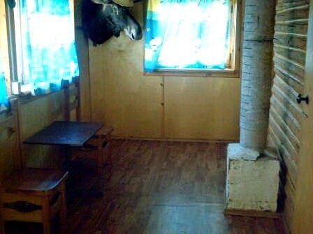 Первый этаж поделен на две условные зоны: «зал» и «спальня». В «зале» располагается обеденная зона, 3 одноместных кровати. В «спальне» — 2 одноместных кровати и тумбочка. Второй этаж. Две комнаты, в каждой комнате двуспальная кровать, предоставляется постельное белье. На каждом этаже стоит кухонный стол, имеется электроплита и электрочайник, комплект посуды, а также холодильник.