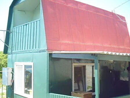 К дому пристроена крытая веранда. На веранде стоит столик, стулья. На первом этаже жилая зона совмещена с кухней. В помещении стоит раскладной двуспальный диван. На кухне имеется электроплита, электрочайник, холодильник, микроволновая печь. На втором этаже стоит двуспальная кровать, есть небольшой балкончик. В дом подведена вода.