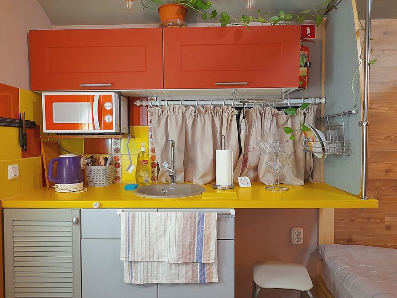 Небольшой уютный дом для спокойного семейного отдыха с собственной ванной комнатой и кухонной зоной.