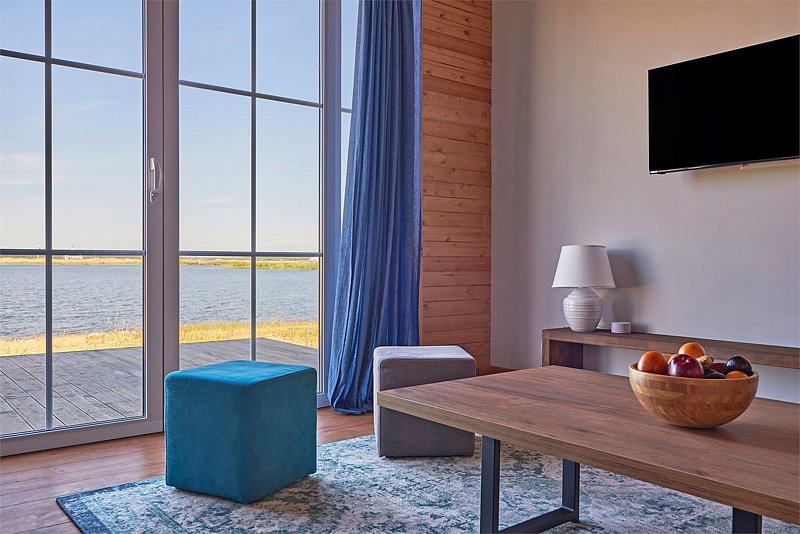 Комфортабельный номер с панорамным видом на озеро, оснащенный всем необходимым для отличного отдыха.