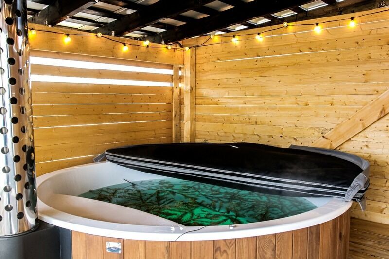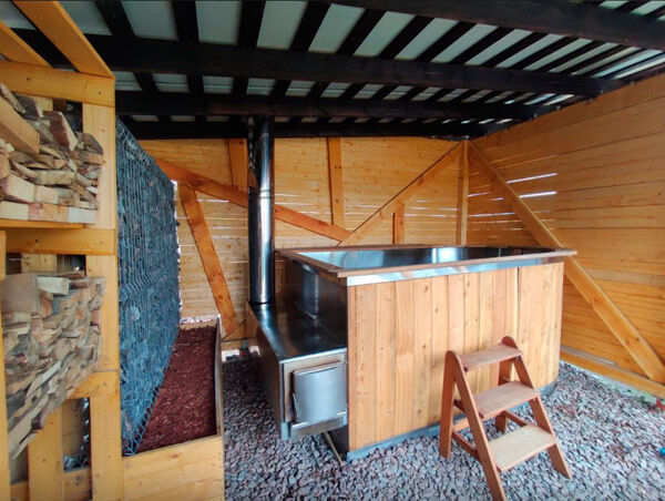 Купель к заезду гостей наполняется чистейшей водой из скважины. Комфортно одновременно в купели себя будут чувствовать до 8 гостей. Купель можно использовать в любой сезон и в любую погоду. А еще у купели есть функция хромотерапии – лечения цветом.