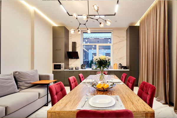 - полностью оборудованная кухня с необходимым современным оборудованием, инвентарем и посудой