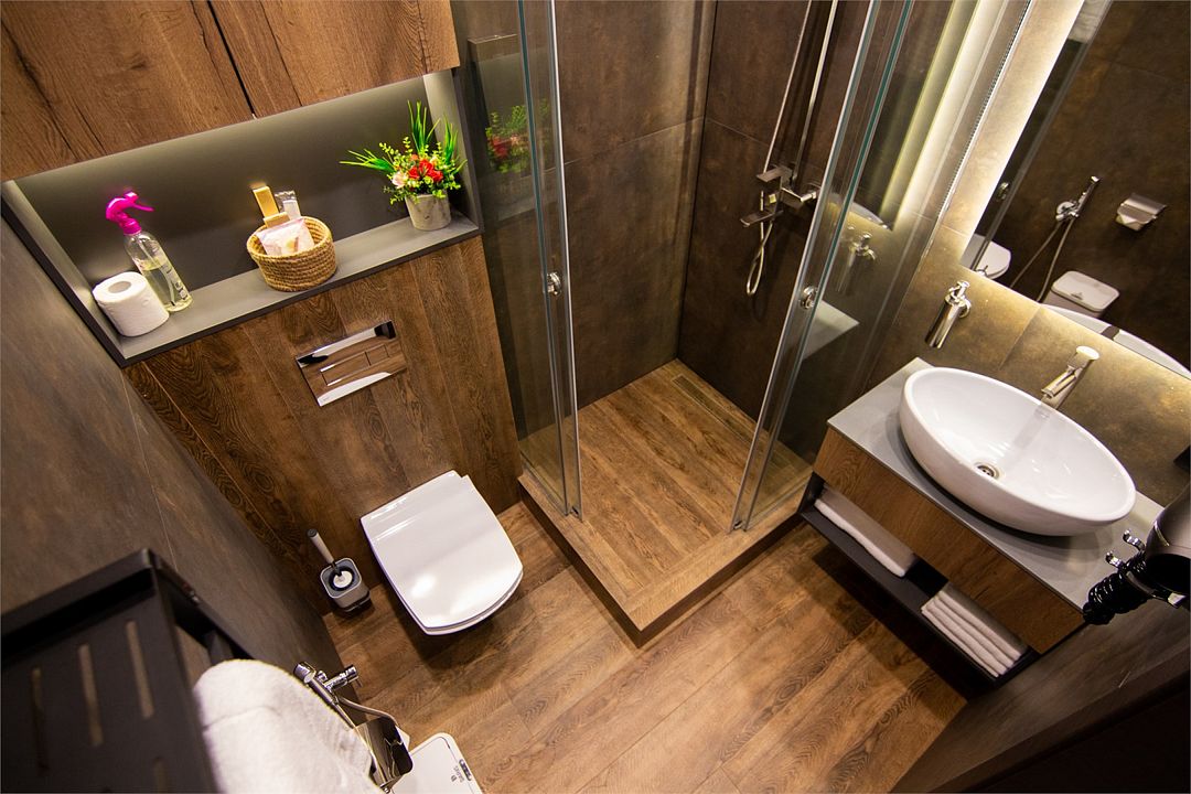 - с ванной или душевой кабиной