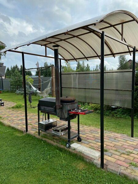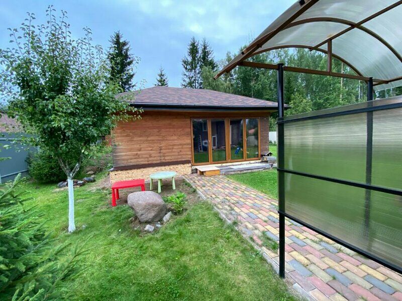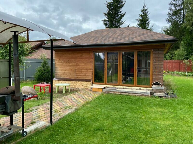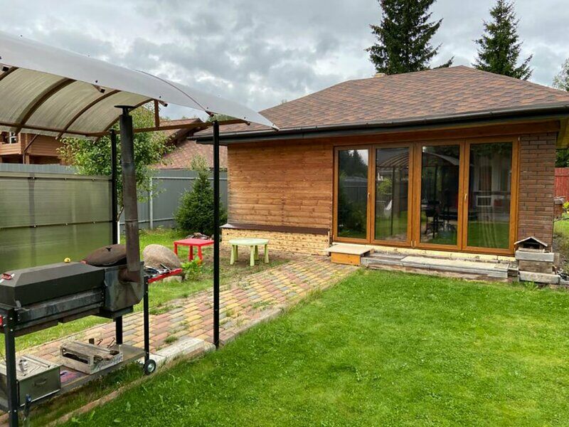 Рядом с коттеджем есть баня. Мангальный комплекс находится под крышей, что позволяет пользоваться им в любую погоду. Освещение также предусмотрено.