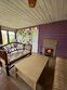 В коттедже имеется раскладной диван — размер спального места 180х200, возможно поставить раскладушку, есть телевизор, постельные принадлежности, холодильник, микроволновая печь, плита, сковородки, посуда, шампуры, шезлонги.