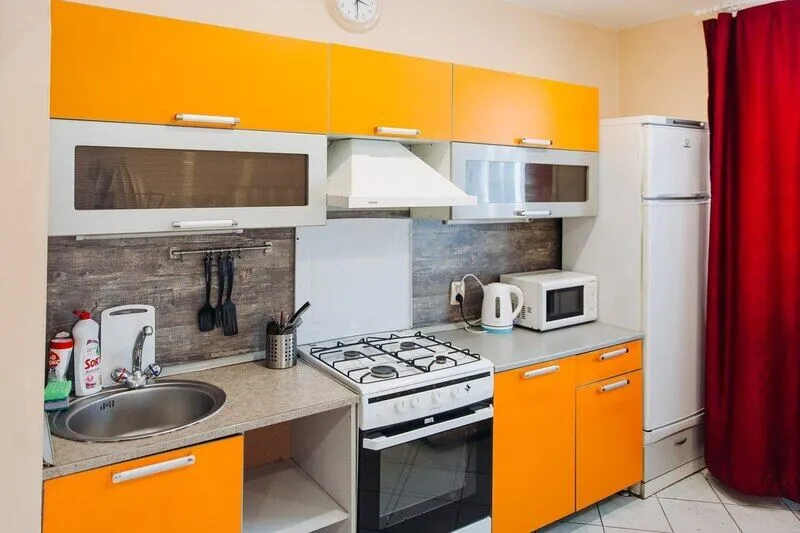 На кухне все необходимое: газовая плита,духовка, микроволновая печь, чайник, вся необходимая посуда. Сан. узел.