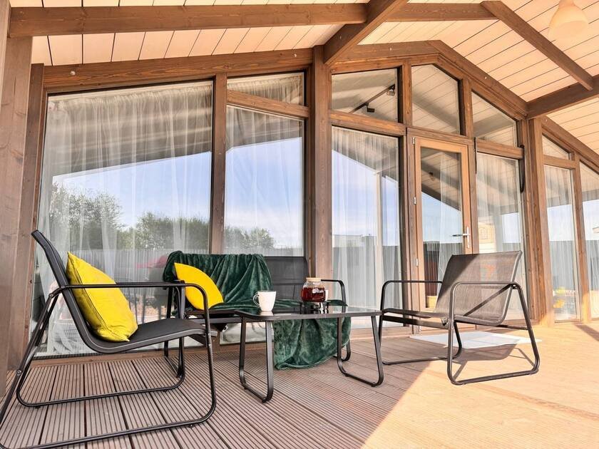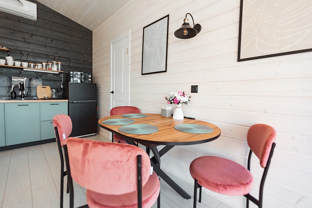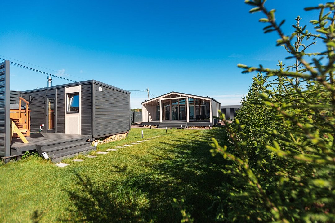 Каждый из домов оборудован всем необходимым для комфортного проживания: ортопедическими матрасами, высококачественным постельным бельем, полностью укомплектованной кухней и современной бытовой техникой, включая SmartTV и Wi-Fi. В номерах предусмотрены косметические принадлежности и продуманные системы хранения для максимального удобства. Для парковки автомобилей предусмотрена зона, рассчитанная на два транспортных средства, что особенно удобно для семей и групп друзей.