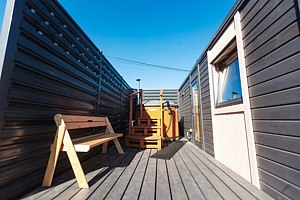 На территории гостей ждет уютная дровяная купель Фурако — просторная деревянная чаша, наполненная теплой водой. Благодаря подогреву на дровах здесь создается особая атмосфера уюта и расслабления.