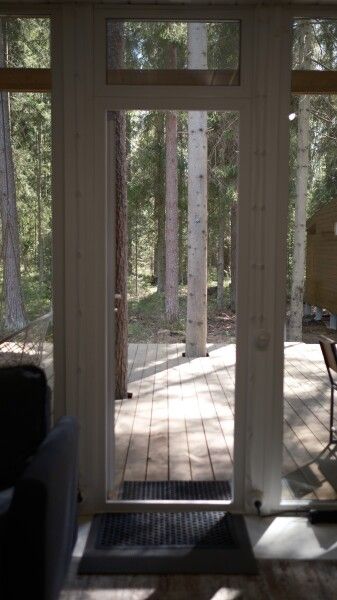 - панорамное окно с видом на лес;
