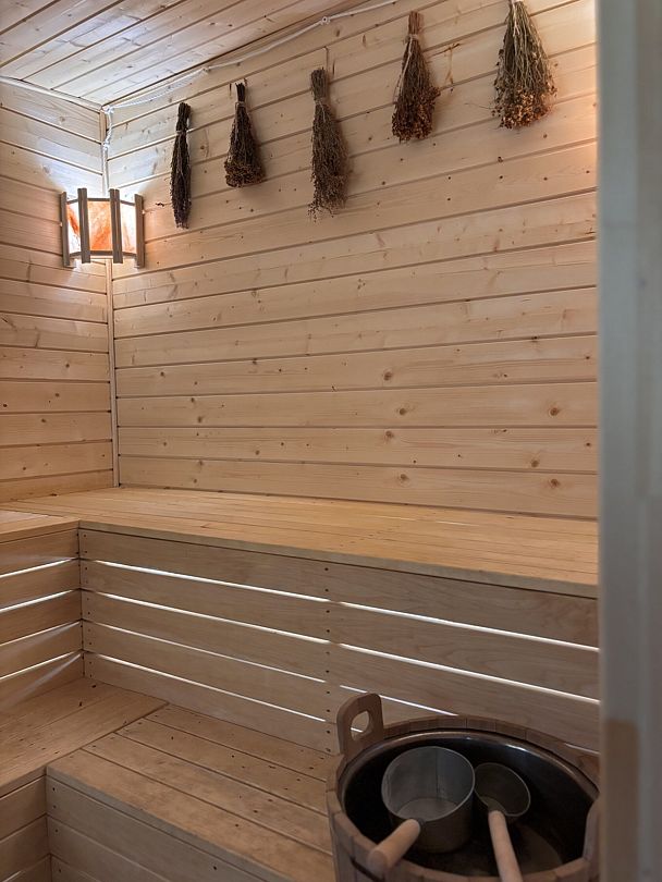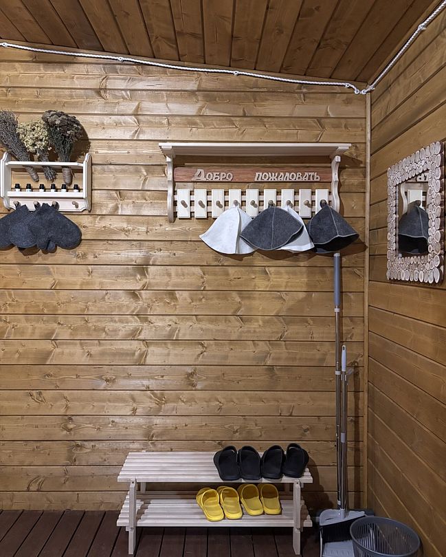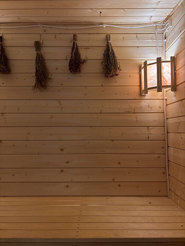 Веник, шапочки, чистые простыни, арома-масла и чай входят в стоимость. Вместимость бани до 6-и человек. Есть душевая и туалет.