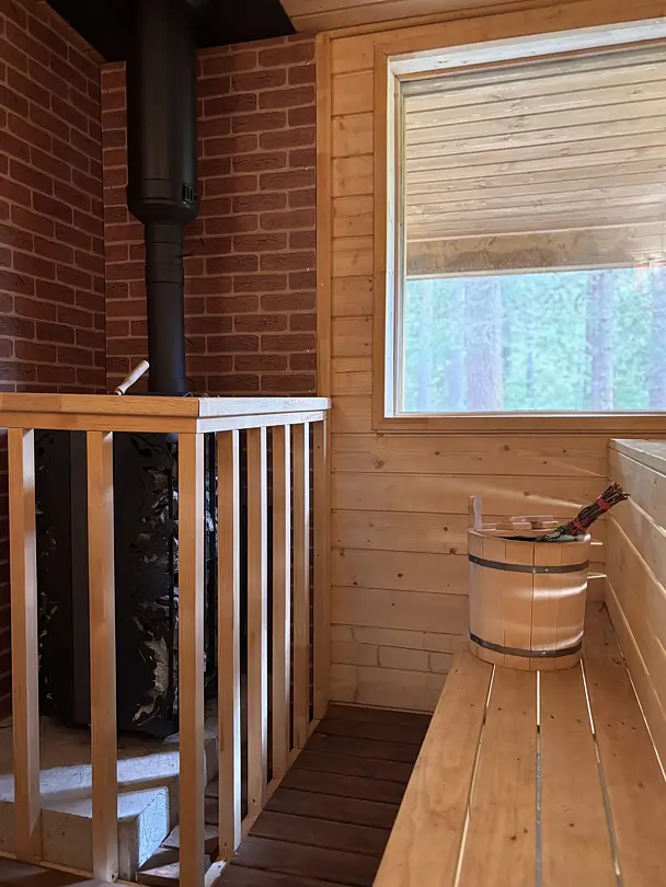 Инфраструктура: тапочки, зона отдыха, простыни, шапочки, обливное ведро, душ, чай/угощенияМинимальное время аренды: 2 часаПопариться в настоящей русской баньке березовыми вениками, а после выпить ароматного чая на террасе с видом на хвойный лес — идеальный вечер за городом.