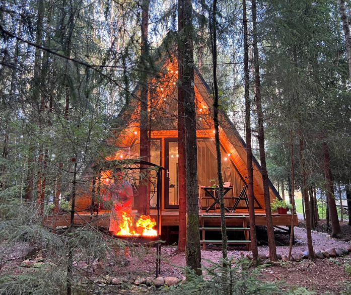 Гостевые дома «Клевер Экофорест» — это новые уютные домики типа А-фрейм в 50 км от Санкт-Петербурга.