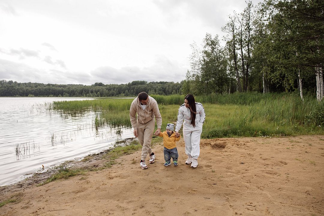 Дети могут весело провести время на детской площадке на пляже у озера.