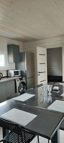 В доме есть посудомоечная и стиральная машины, холодильник, микроволновая печь, чайник, двухконфорочная индукционная плита, а также посуда, бытовая химия. Для досуга подключен Wi-Fi, Smart ТV с подписками на онлайн-кинотеатры, есть доступ к YouTube. Установлен фильтр для воды. В ванной комнате есть электрический полотенцесушитель и фен. K услугам гоcтей ecть и бaня, беседка и бассейн в летний период.