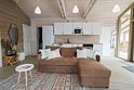 • просторная гостиная с кухонной зоной и диваном.