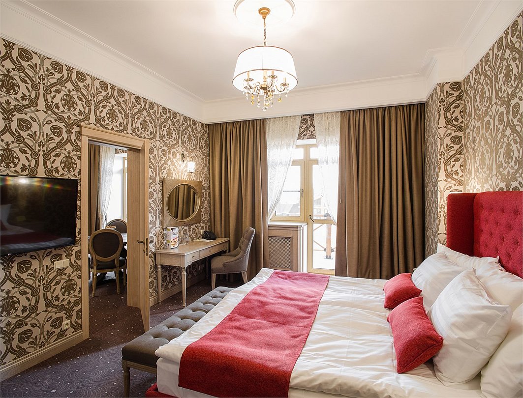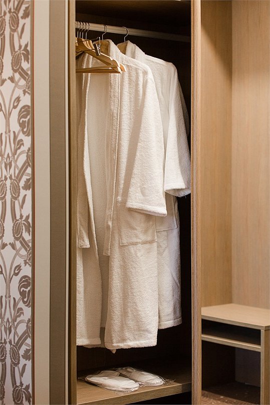 телевизор, кабельное телевидение, Wi-Fi, кондиционер, фен, радио, ванна или душевая кабина, халаты, банные полотенца, тапочки, гигиенические средства, балкон, две односпальные или большая двуспальная кровать, шкаф для одежды, письменный стол, сейф, ковровое покрытиеВ номере