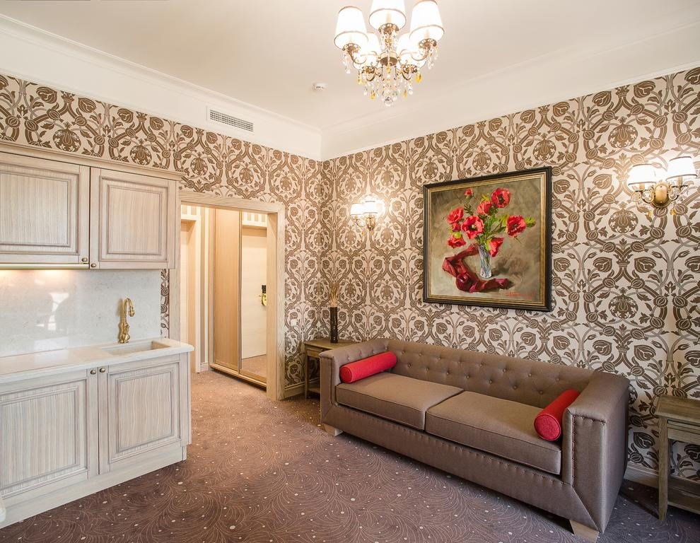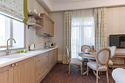 Номер оформлен в нежных пастельных тонах, сочетая элегантность и уют. Просторная гостиная с удобным диваном и обеденным столом плавно переходит в зону кухни. Элегантная мебель и декоративные элементы придают помещению ощущение стиля. Спальня оснащена комфортабельной кроватью и мягким освещением, способствующим расслаблениюУслуги и удобства