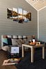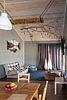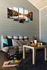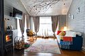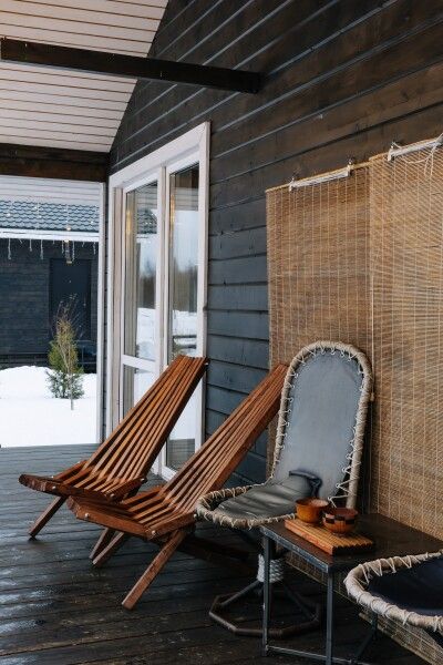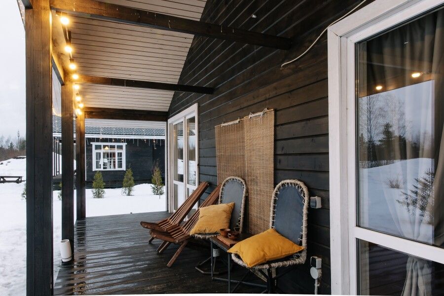 Гостиная: камин (дрова входят в стоимость аренды), панорамные окна, крытая терраса, шезлонги