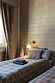 2 спальная комната: 2 односпальные кровати 90*200, ванная комната (раковина, унитаз, душевая панель), фен, мыло, шампунь, гель;