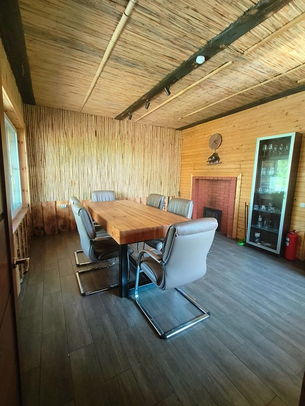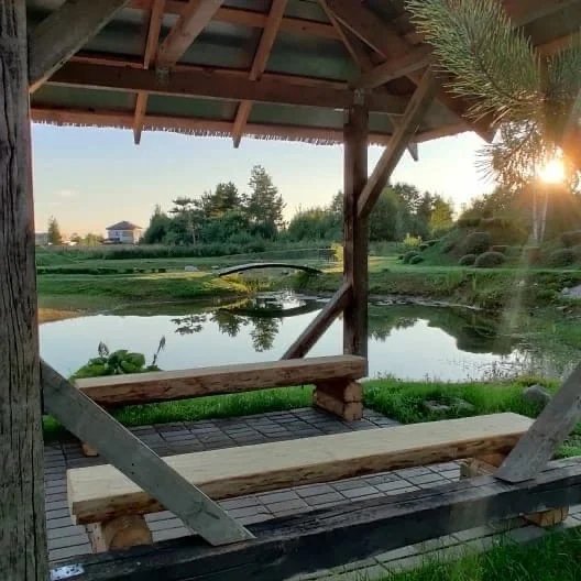 Беседка с мангалом и кухня гостиная на 6-8 человек. Туалет, вода, посуда, электрический чайник, микроволновая печь, холодильник.