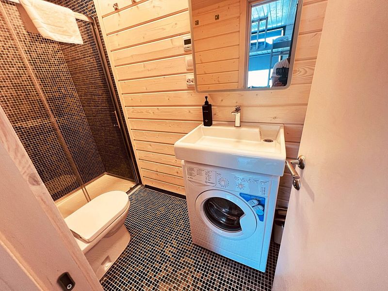 Санузел: совмещенный санузел с душевым уголком, бойлер на 100л, фен, стиральная машинка.