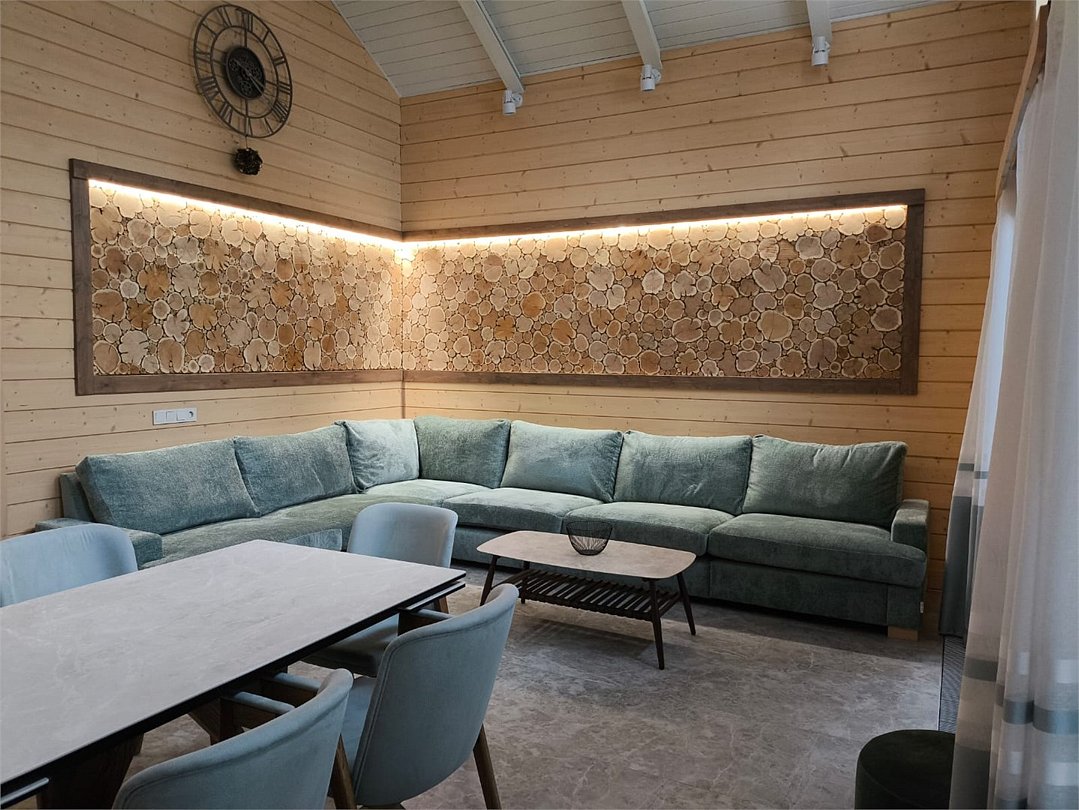 2 спальни, диван-кровать, ТВ, 2 с/у, душ, ТВ, кухня. СПА: русская парная, турецкая парная (хаммам), уличный чан на дровах, холодная купель.