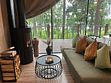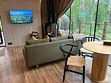 Панорамный коттедж c двумя спальнями, просторной гостиной с камином, функциональной кухней и двумя санузлами. Интерьер выполнен в стиле джапанди: экологичные материалы, природные фактуры, натуральные цвета и яркие акценты.