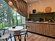 Дом оборудован террасой с большой диванной зоной. Рядом, зона барбекю, где можно приготовить любимые блюда на огне и насладиться ими на открытой террасе. Коттедж подойдет для больших семей или компаний: 4 основных спальных места + доп.диван в гостиной для ребёнка до 14 лет.
