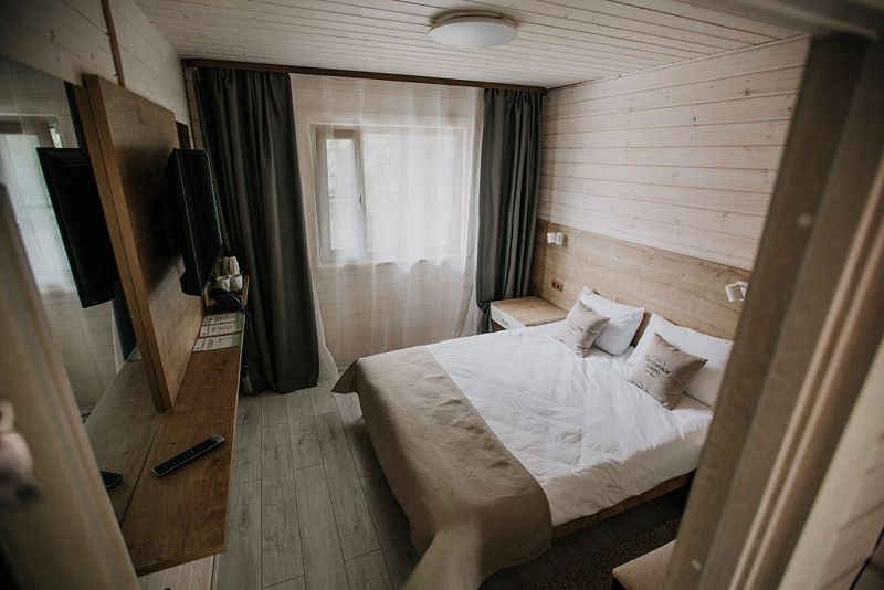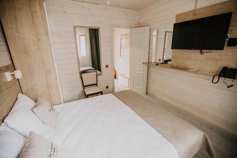 К размещению представлены комфортные номера и уютные деревянные коттеджи разной вместимости. Среди удобств телевизор с плоским экраном, высокоскоростной Wi-Fi, личный сейф и ванная комната с феном, косметическими средствами и мягкими полотенцами.