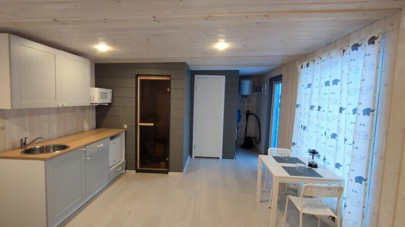 Рядом находится сосновый лес. Отличная рыбалка, грибы, ягоды. Спуск для катера. У дома есть собственный пирс, на котором можно загорать, ловить рыбу. Гости могут отдохнуть на террасе. Санкт-Петербург находится в 150 км. На территории работает бесплатный Wi-Fi и обустроена частная парковка. В мини доме имеется двухспальная кровать, гостиная, отличная большая терраса, 1 ванная комната, постельное белье, полотенца, полностью оборудованная кухня и сад с видом на реку. В числе удобств гостевого загородного дома — настоящая русская баня (оплачивается отдельно).
