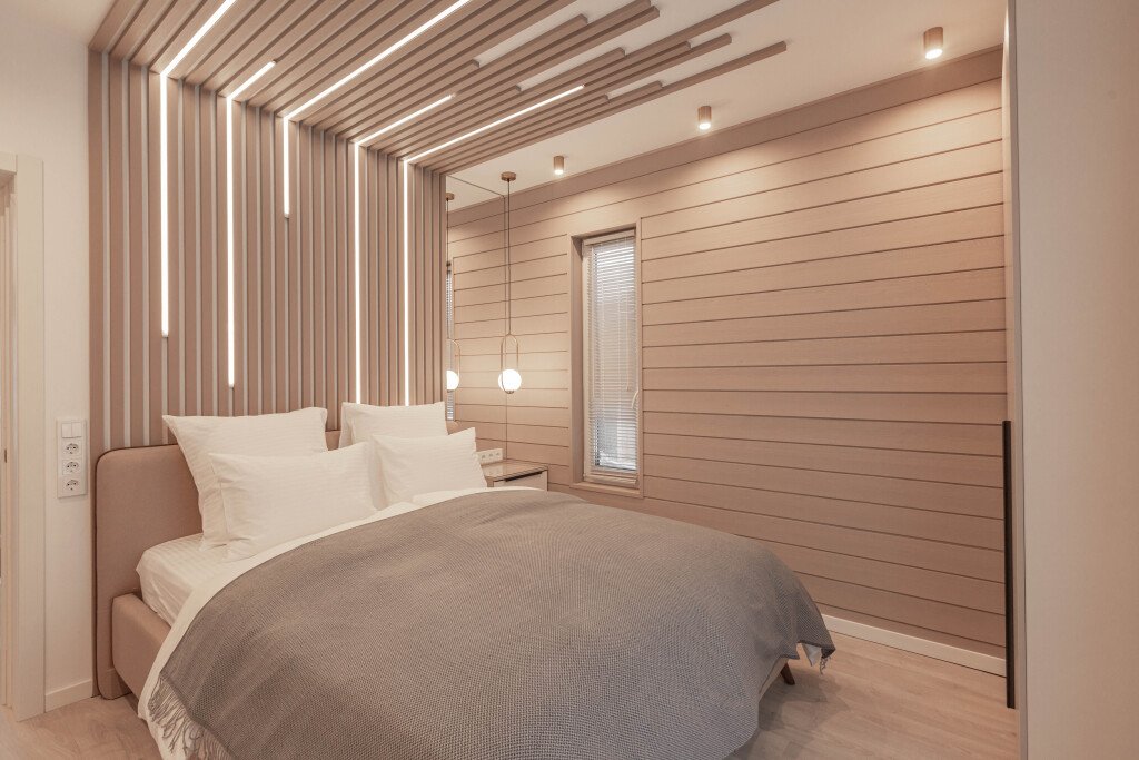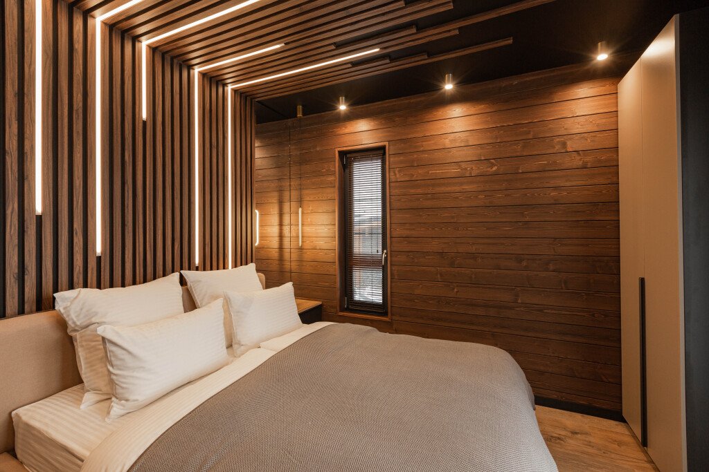 - 1 спальня на первом этаже — двуспальная кровать 1 шт.;