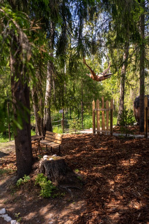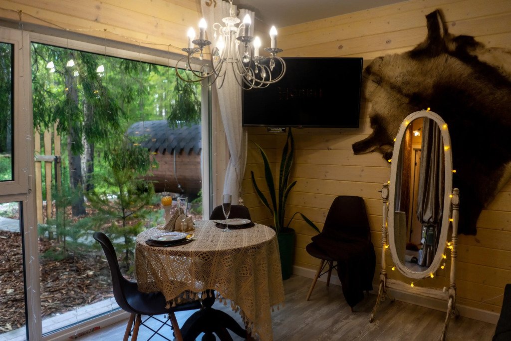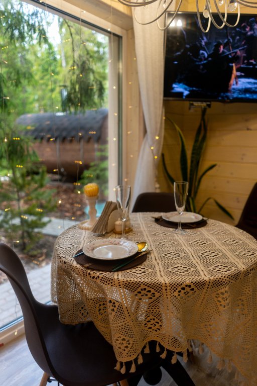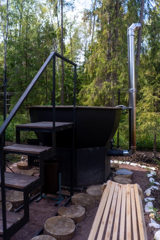 Территория освещена. Гостям за дополнительную стоимость также доступны следующие услуги: баня-бочка, купель и чан с горячей водой возле леса. На территории есть площадка для пикника и индивидуальная мангальная зона.